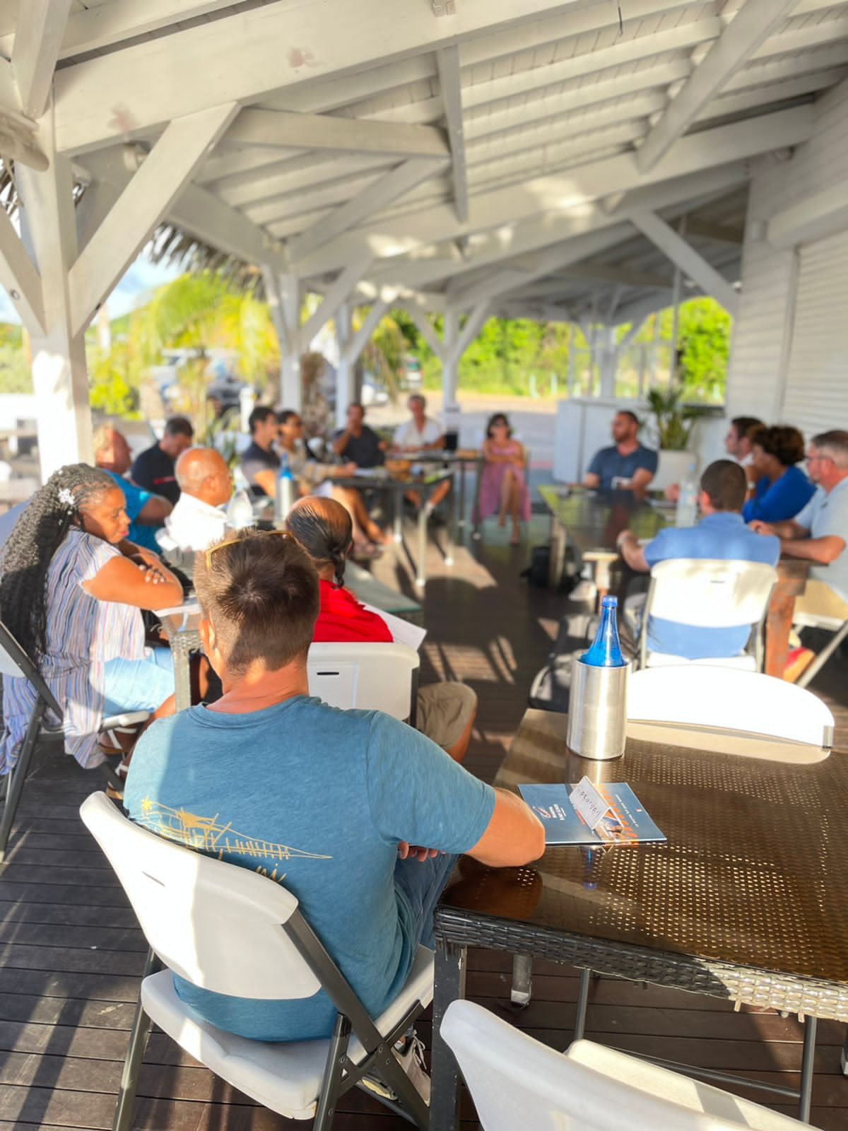 The meeting took place at “Le Yacht Club” restaurant located at the marina. It was also a nice opportunity to celebrate the start of the tourist season with cocktails in a relaxed and friendly setting.